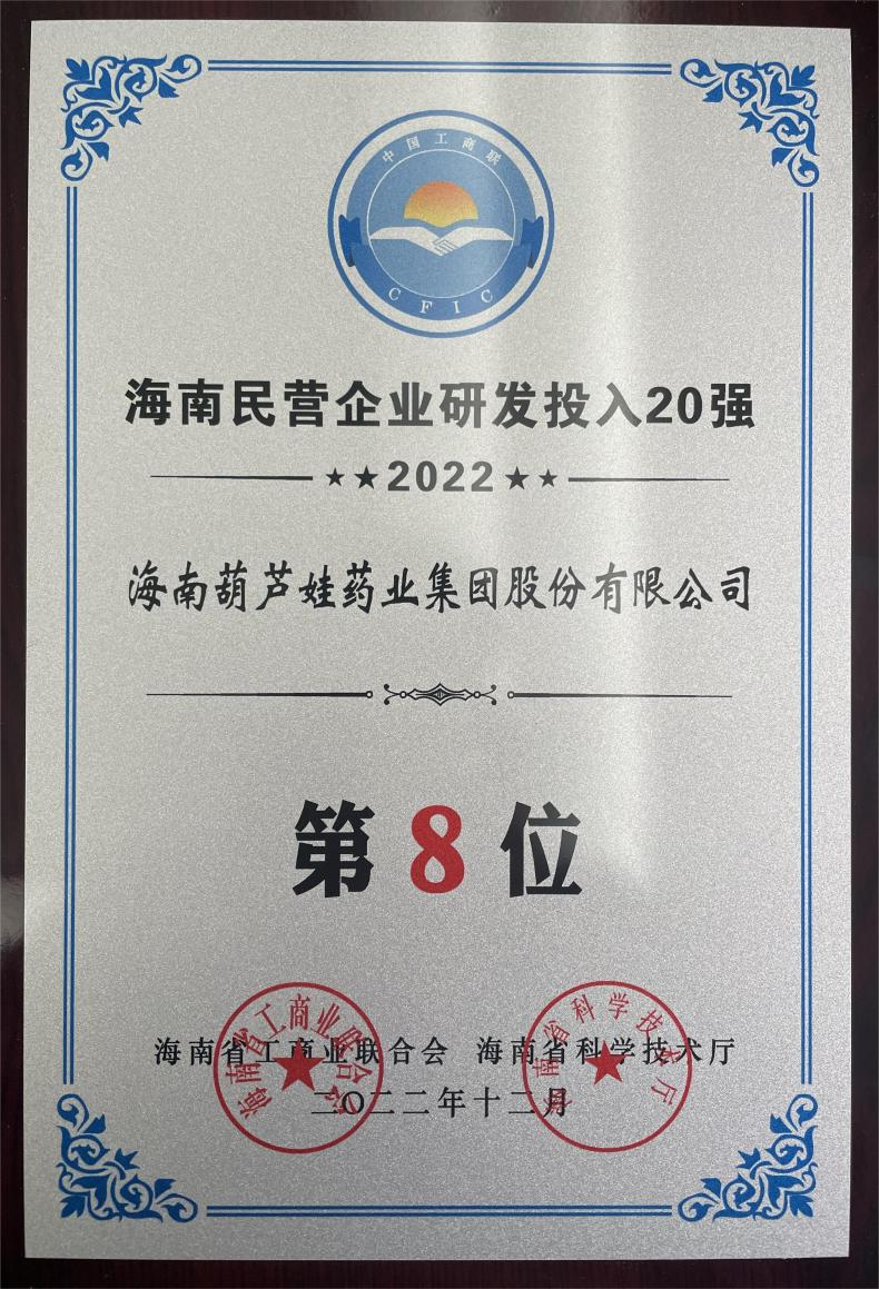 12月23日,2022海南民营企业50强和研发投入20强发布会在海口举行。会上发布了“2022海南民营企业50强”“2022海南民营企业研发投入20强”榜单和分析报告。blb百乐博药业再次荣登两榜,在海南民营企业50强榜单中位列第25位,较去年上升8位,这也是公司连续三年登榜;在海南民营企业研发投入20强中位列第8位,较去年上升7位。